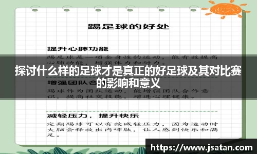 足球作为一项全球最受欢迎的运动,其魅力不仅在于比赛的结果,更在于比赛过程中展现出的技战术水平与团队合作精神。真正的好足球,不仅仅是取胜的方式,更是一种艺术,一种哲学。本文将从四个方面探讨什么样的足球才是真正的好足球,以及这种足球对比赛的影响和意义。这四个方面包括:技术与战术,团队合作,球员素养,以及...